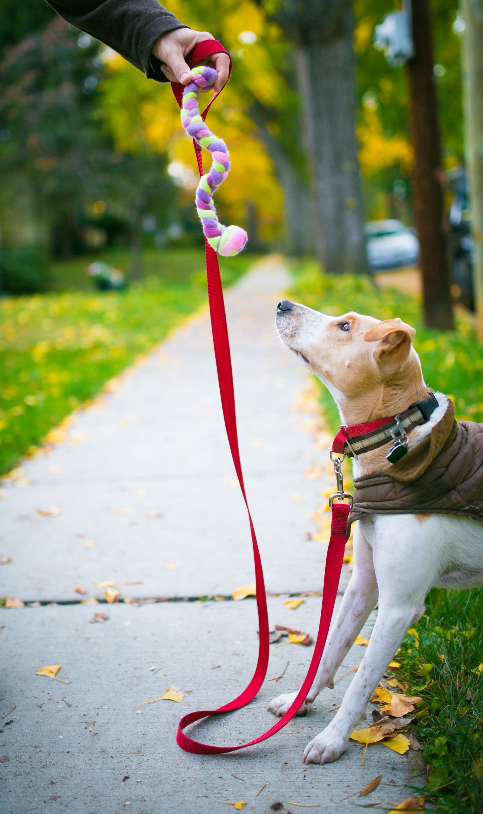 This fabulous dog toy is rugged and fits right in your pocket for outings with your canine friend. These Woolly Tugs are made from 100% Merino wool. Each Woolly Tug is felted, knotted/and or braided. This toy is a good size for stuffing in your pocket during training and its firmness makes it easy to pull out quickly and toss accurately.